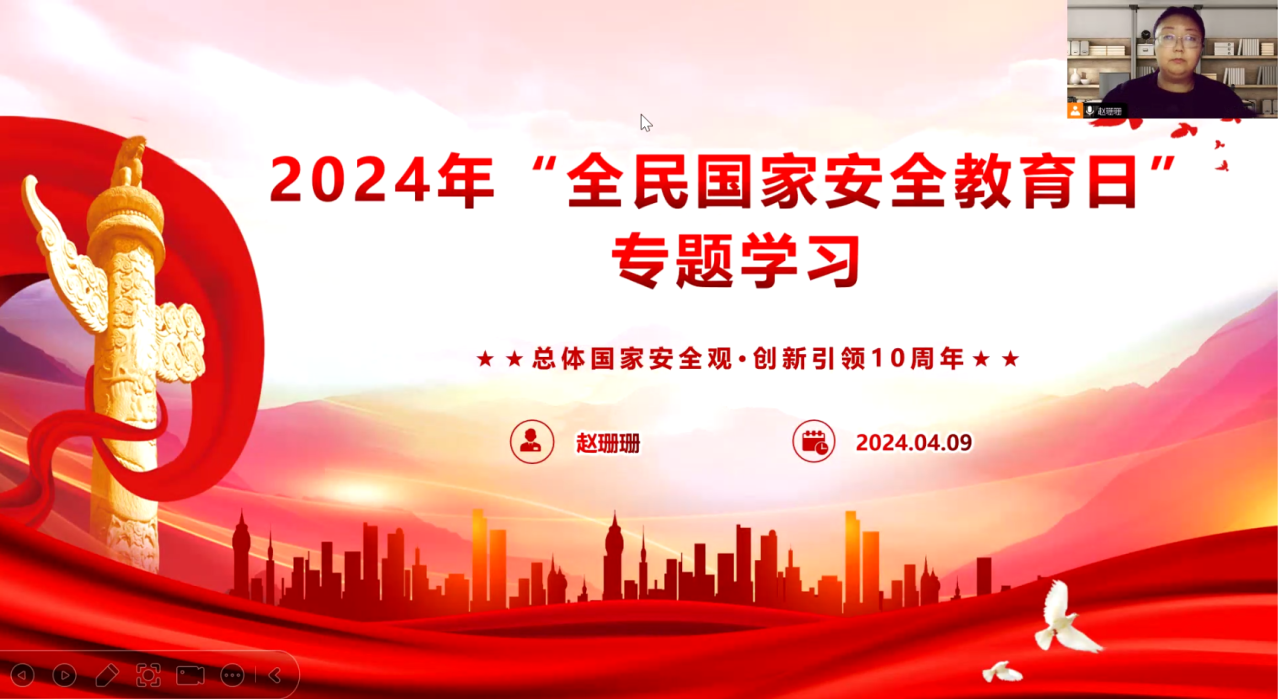 为进一步强化学生的国家安全意识,提升安全防范能力,营造和谐稳定的校园环境,4月9日,williamhill中国通过腾讯视频开展国家安全教育主题讲座。本次讲座由williamhill中国团委书记赵珊珊担任主讲人,williamhill中国学生骨干参加。
