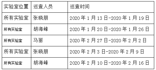 “关于做好寒假期间实验室安全工作的通知”要求,落实假期安全巡查人员,坚持假期期间查巡,发现问题及时解决。安排如下: