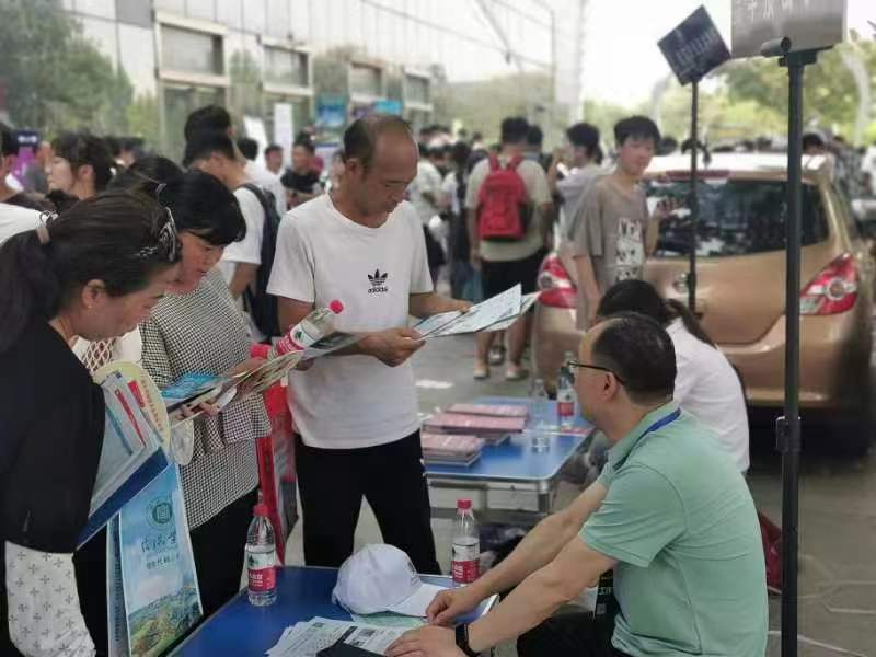 炎炎夏日,热情不减。为营造良好的宣传氛围,我院老师早早来到学校,精心布置招生展位,分发宣传资料。宣传现场,参与咨询的考生和家长络绎不绝,老师们根据实际数据和高考现状耐心解答,并根据考生的兴趣和成绩为其提供报名建议,最大程度上解决考生报考所面临的困难和疑虑。