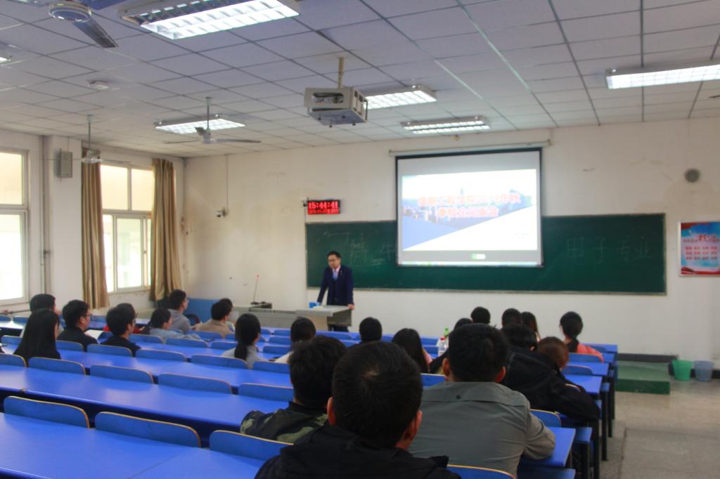 为了更好的解决大学生就业难题,缓解大学生毕业压力,11月7号下午三点半,信息工程学院在3406教室举办了河南省宏安航空科技有限公司的招聘会,宏安航空科技有限公司院校合作经理李京涛担任此次招聘会的主讲人,16级相关专业学生参加了此次招聘会。