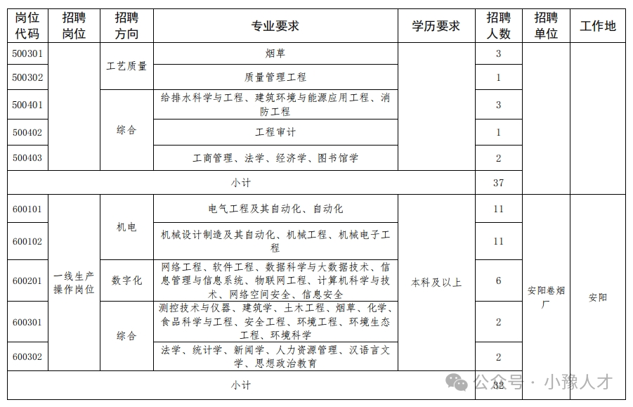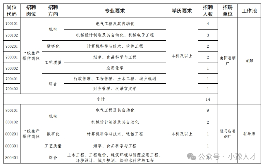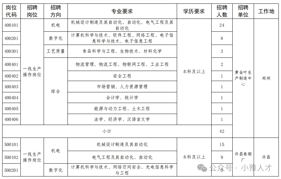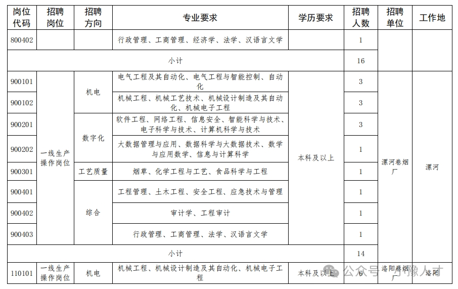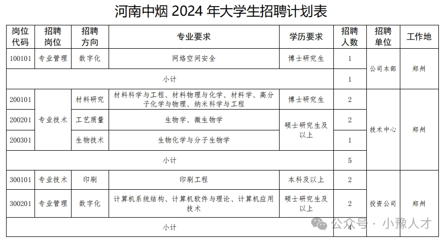 招聘单位、岗位、人数、专业及学历要求见附件《河南中烟2024年大学生招聘计划表》(附件1)。