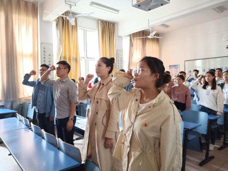 会议开始后,由学生党员代表李敏带领大家重温了入党誓词。