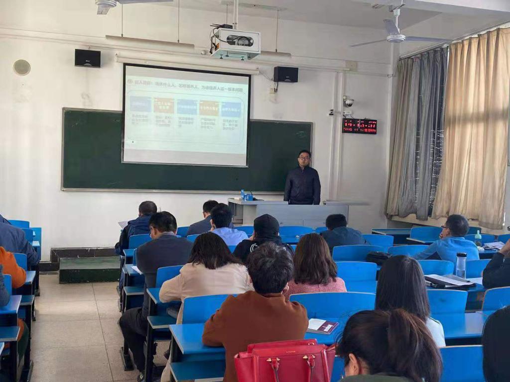 首先,williamhill中国党总支副书记甘泉同志围绕本次活动主题,从十九届四中全会的会议内容、我国国家制度和国家治理体系的十三条显著优势、推进国家治理体系和治理能力现代化的总体目标、推进国家综合治理体系和治理能力现代化的具体路径四个方面带领大家深入学习十九届四中全会精神,把全会精神讲深讲透,用全会精神凝聚人心、增进共识。