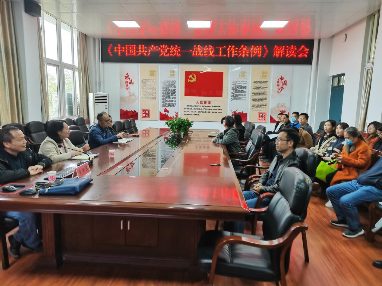 解读会上,李新建首先带领老师们学习了统战工作的内涵和本质要求,他指出统战工作就是大团结大联合,解决统战工作就是解决人心和力量的问题。随后,李新建梳理了全国统战工作会议召开的情况,他指出不同历史时期,中国共产党始终把统战工作摆在全党工作的重要位置,只有做好统战工作,才能为实现“两个”百年奋斗目标、实现中华民族伟大复兴的中国梦增添强大力量。最后,李新建带领老师们学习了《中国共产党统一战线工作条例》修订的背景、原则和基本内容。修订后的《条例》提升了统战工作的地位,扩大了统一战线的内涵,规范了统一战线的职能。