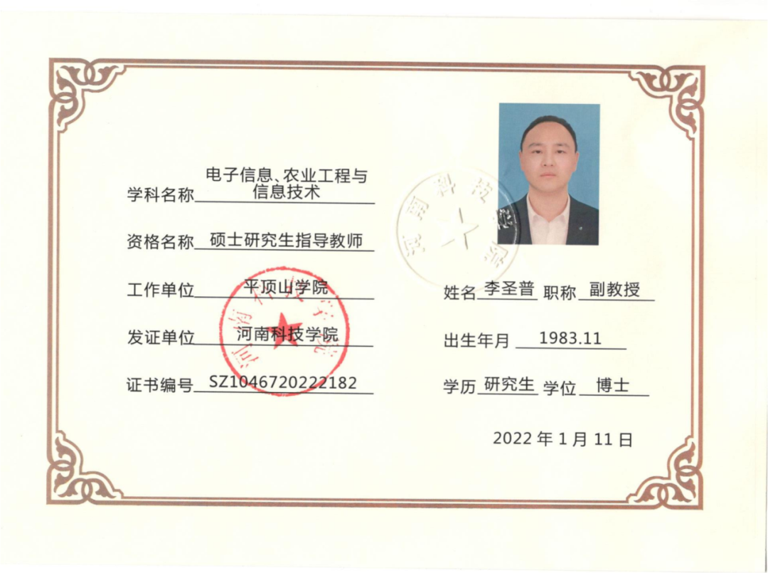 李圣普,中共党员,博士,副教授,硕士生导师,现任电子信息工程教研室主任,主要从事信号处理辅助软件课程教学工作,致力于群体智能与无人系统领域科学研究,主持或参与省部级以上项目10多项,在国内外重要期刊及会议上发表高质量科研论文10多篇,曾获河南省本科高校中青年骨干教师、Williamhill威廉希尔学术带头人、科研先进个人、实习优秀指导教师、优秀论文指导教师等荣誉称号。
