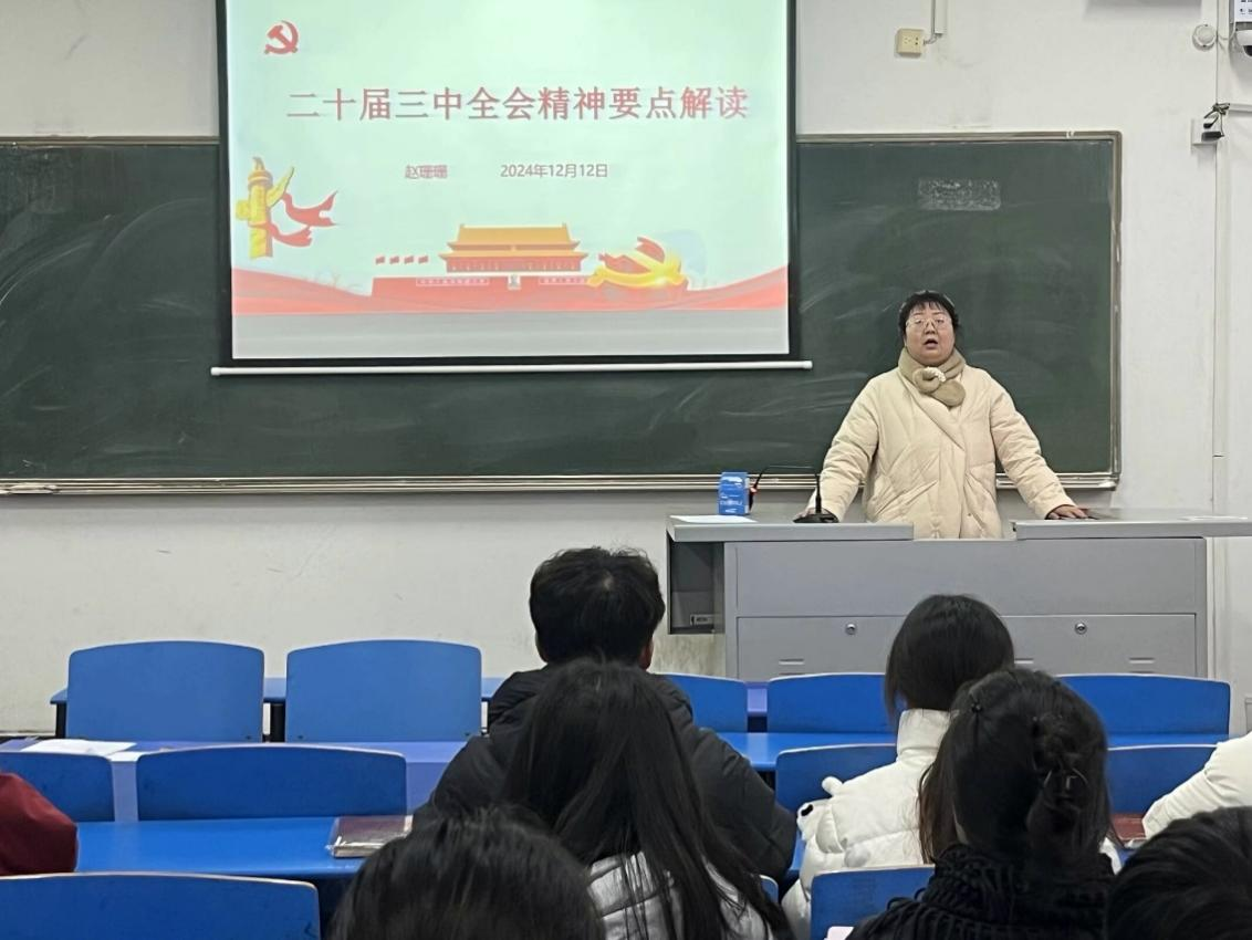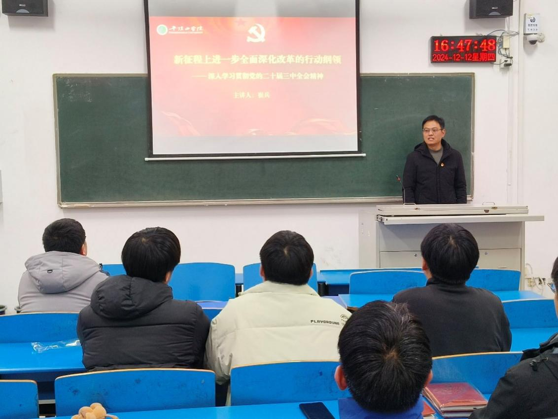 首先,各支部书记为支部全体党员上《党的二十届三中全会精神要点解读》专题党课,从学习贯彻党的二十届三中全会精神的重要意义,党的二十届三中全会精神的主要内容和全面准确理解《决定》提出的进一步全面深化改革重大举措三个方面深入剖析了党的二十届三中全会精神的丰富内涵和实践要求,引导全体党员要准确把握党的二十届三中全会精神的核心要义。随后,各支部带领同志们学习了习近平总书记理论文章《必须坚持守正创新》,习近平总书记对新时代马克思主义理论研究和建设工程的重要指示精神和中共中央办公厅印发的《关于进一步加强和改进流动党员管理工作的意见》。紧接着,各支部党员代表分享了学习感悟,他们纷纷表态将持续加强对党的二十大和党的二十届三中全会精神的理解与实践,努力提升个人能力与素质,为早日实现党的远大目标和学院高质量发展不懈奋斗。