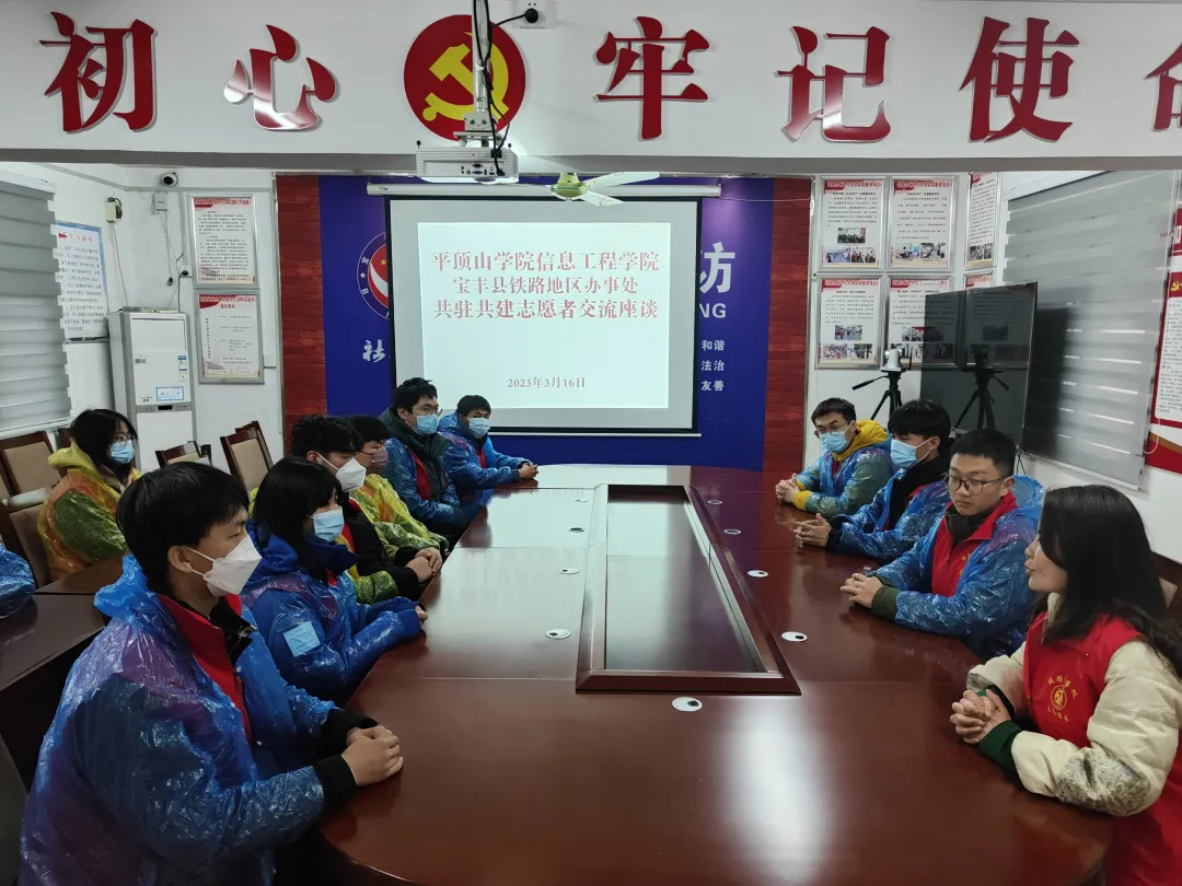 师生一行首先来到宝丰县铁路地区办事处,与办事处工作人员开展“williamhill中国宝丰县铁路地区办事处共筑共建志愿者交流座谈”。这是本次主题教育活动的第一站,办事处志愿者就疫情三年来的社区志愿服务开展情况,社区人员构成等进行了深入交流,学生也积极向社区志愿者分享了在学校参加的疫情防控的相关志愿活动情况,并邀请社区志愿者到学校联合开展志愿活动。