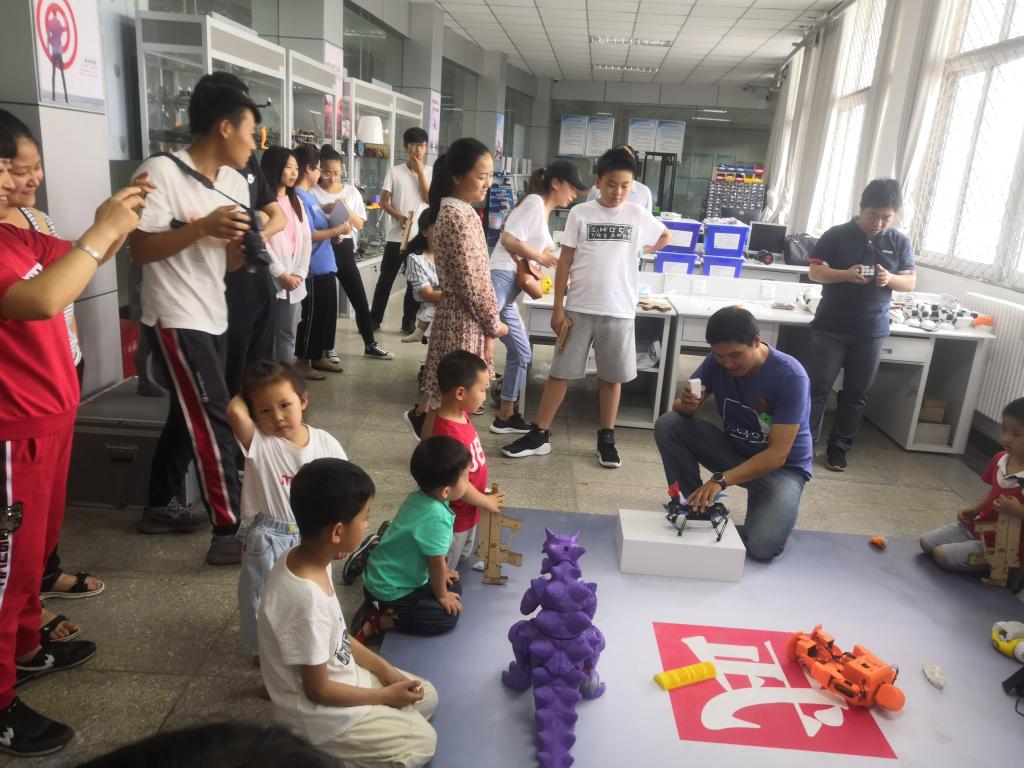 活动伊始,马老师向在场的孩子们介绍并演示了实验室各种类型的机器人和3D打印设备,孩子们都十分感兴趣,看得津津有味。随后,马老师根据儿童们的年龄将15个孩子分成工程组和编程组两个组别,分别在志愿者老师的带领下完成自制枪靶和编程感应装置。最后,在马老师和家长们的见证下孩子们展开了激烈的射击比赛。分工会还为孩子们准备了面包、牛奶和水果等零食,孩子们过了一个充实而有意义的儿童节。