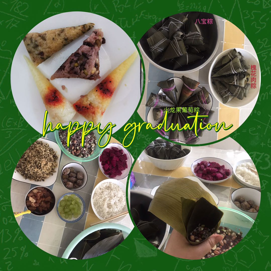 本次活动的开展地点为各自家庭,作品提交方式为图片、视频等。大家提交了丰富的作品,粽叶卷成漏斗状后,用糯米充实压紧,再用绳一绕、一捆,一个精美、鲜绿的粽子就诞生了。有三角的、有四角的、还有迷你的,各式各样的粽子。