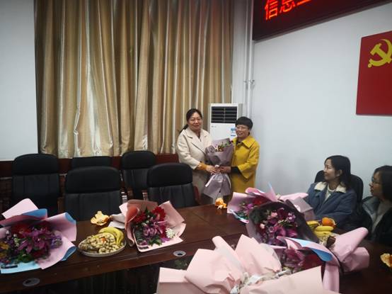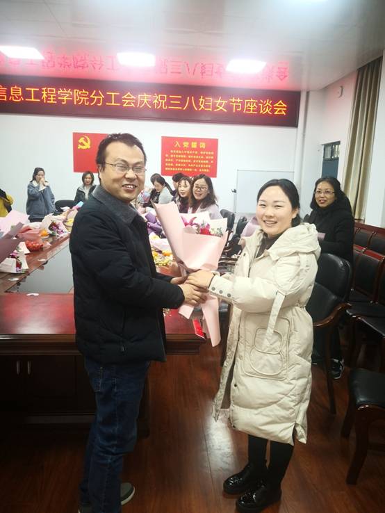 然后各位领导向女教工送鲜花,也送来了给大家的关心与祝福。