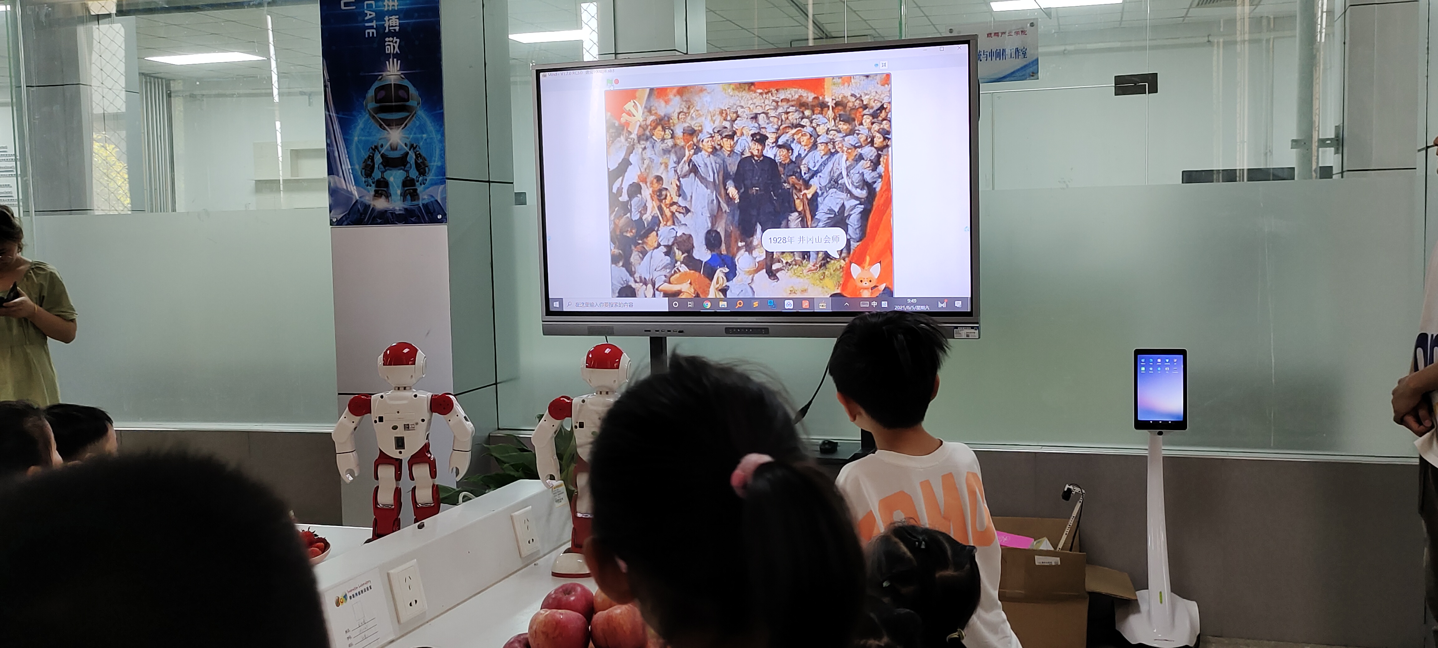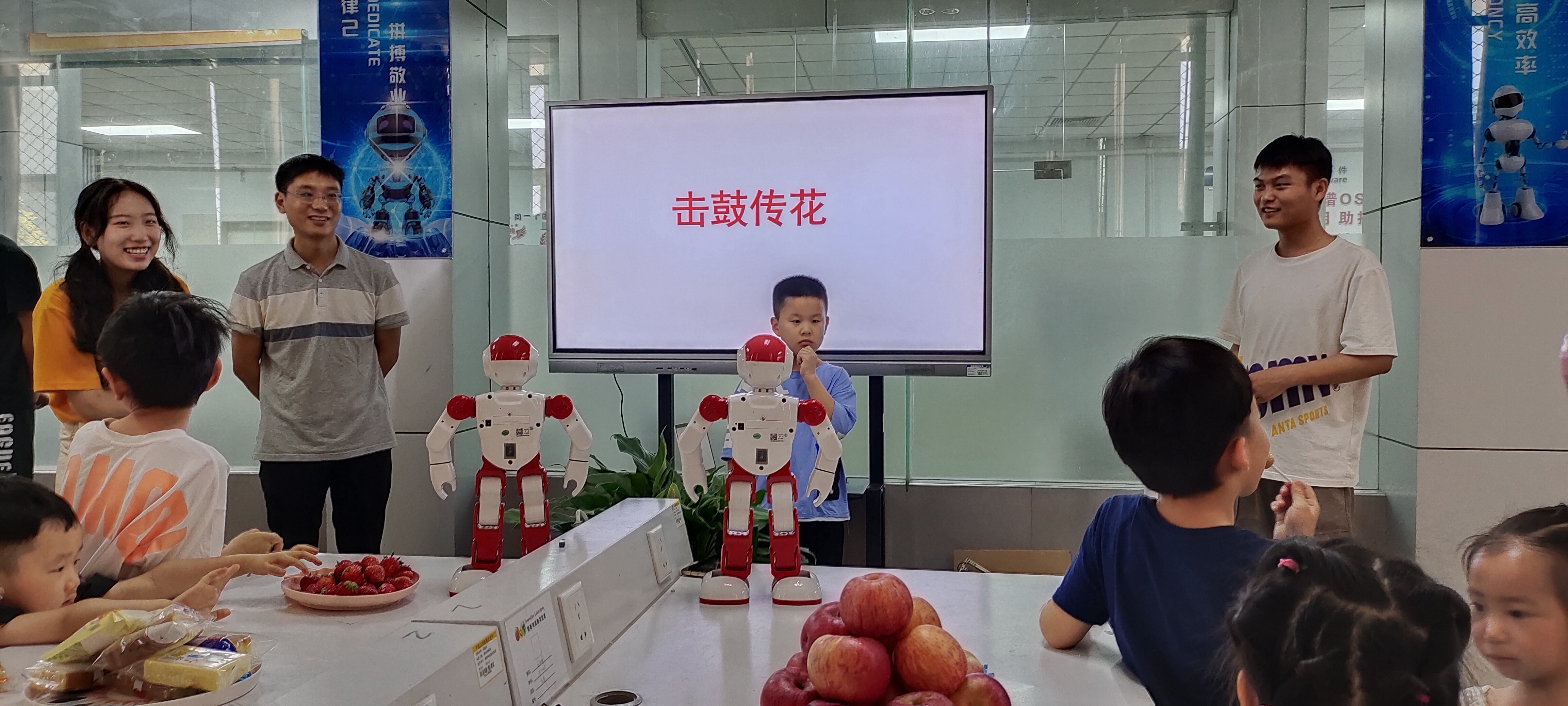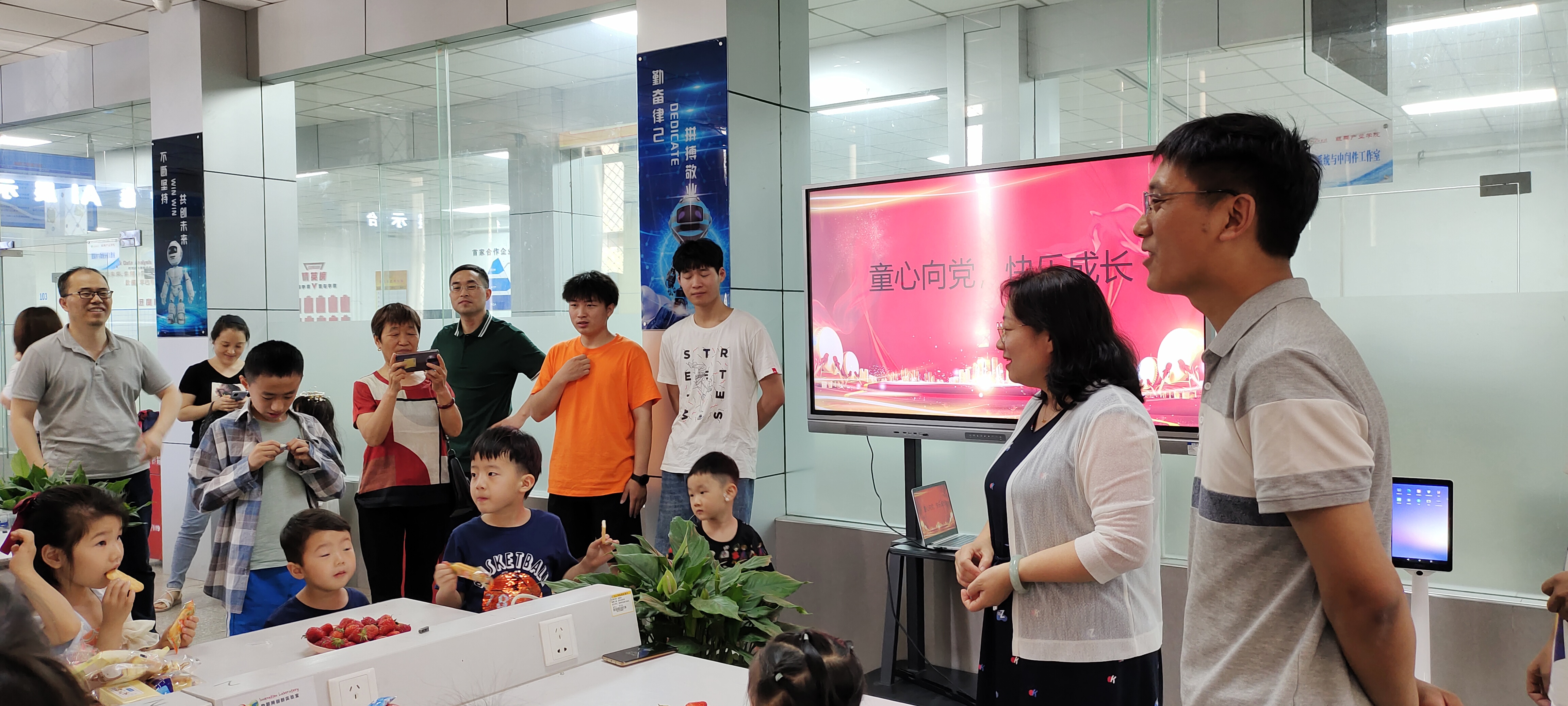 活动伊始,王向前书记讲话,勉励小朋友们更加要珍惜今天的幸福生活,也要努力学习,将来长大为祖国的建设贡献自己的力量。接着,由周志青老师介绍物联网创新实验室的基本情况,让现场儿童对本次活动充满了兴趣。然后,经过“击鼓传花”小游戏暖场后,小朋友们一起回顾了百年党史,通过观看PPT,小朋友们对红色革命有了初步了解,感受到了红色革命的魅力与精神,感悟了党的初心使命。最后,在参加套圈游戏以及机器人知识科普的活动后,学院领导给小朋友们发放了儿童节礼物。