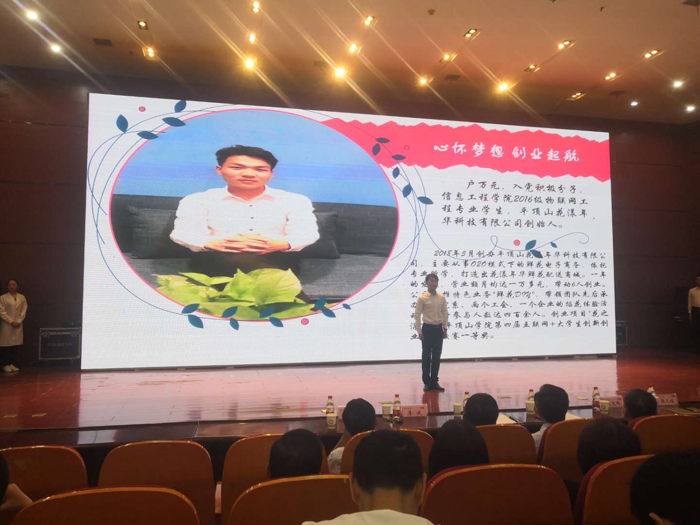 2018年4月初,他利用清明节假期的时间,只身前往云南、郑州、许昌等地花卉种植基地进行实地考察。对于人生地不熟的他,依靠高德地图完成了为期五天的考察,每天十二个小时基本上都在路上走着。考察回来之后便着手入住Williamhill威廉希尔创新创业中心,于2018年5月4日成立平顶山花漾年华科技有限公司。随即便展开了他的创业之路,虽然一路之上很辛苦,出现许许多多的难题,但他凭借坚持不懈的毅力、自强不息的精神坚持了下来。他觉得相比创业前自己所做的,已经幸福很多了,一年的努力,他收获了不仅仅是现在的“花漾年华 花艺(学院店)”,更多的是个人的成长。