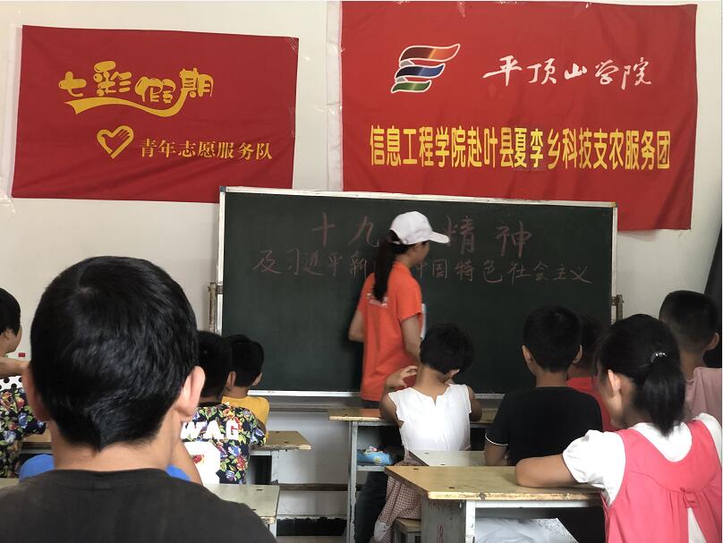 科技支农服务团支教组组员今天特意为小朋友们开展了一堂生动精彩的“十九大精神”宣讲课,带领小朋友们共同学习新时代、新思想。