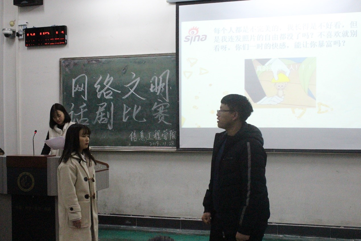 为加强大学生文化素质教育,充分发挥网络育人功能,11月28日晚上七时,williamhill中国于2201教室开展“文明网络”话剧大赛活动,相关人员皆按时到场参加活动。