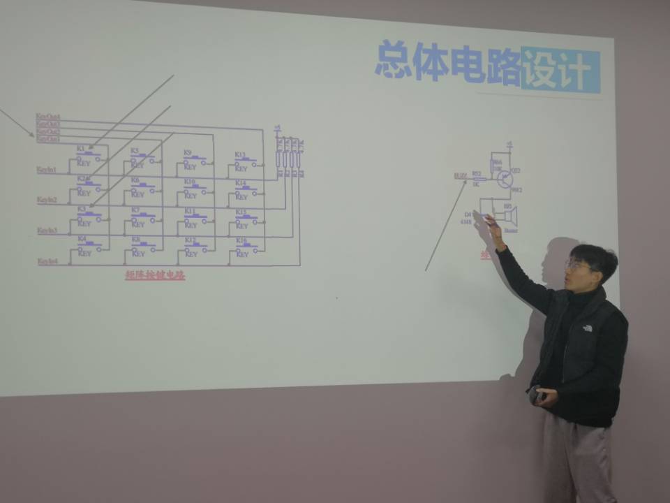 在井然有序的组织下,参赛选手依次上台展示他们精心准备的PPT和作品。比赛期间,参赛选手带来的作品令人大开眼界,特别是爱慕希呦团队设计的篮球计分器,灵活运用了自己学习到的知识与技能,将实用与灵巧相结合,帮助同学们改进篮球竞赛的规范性。王中坤同学的家用小型电子秤以及代码敲不响队的多功能测距仪也毫不逊色,都引起同学们激烈的掌声。