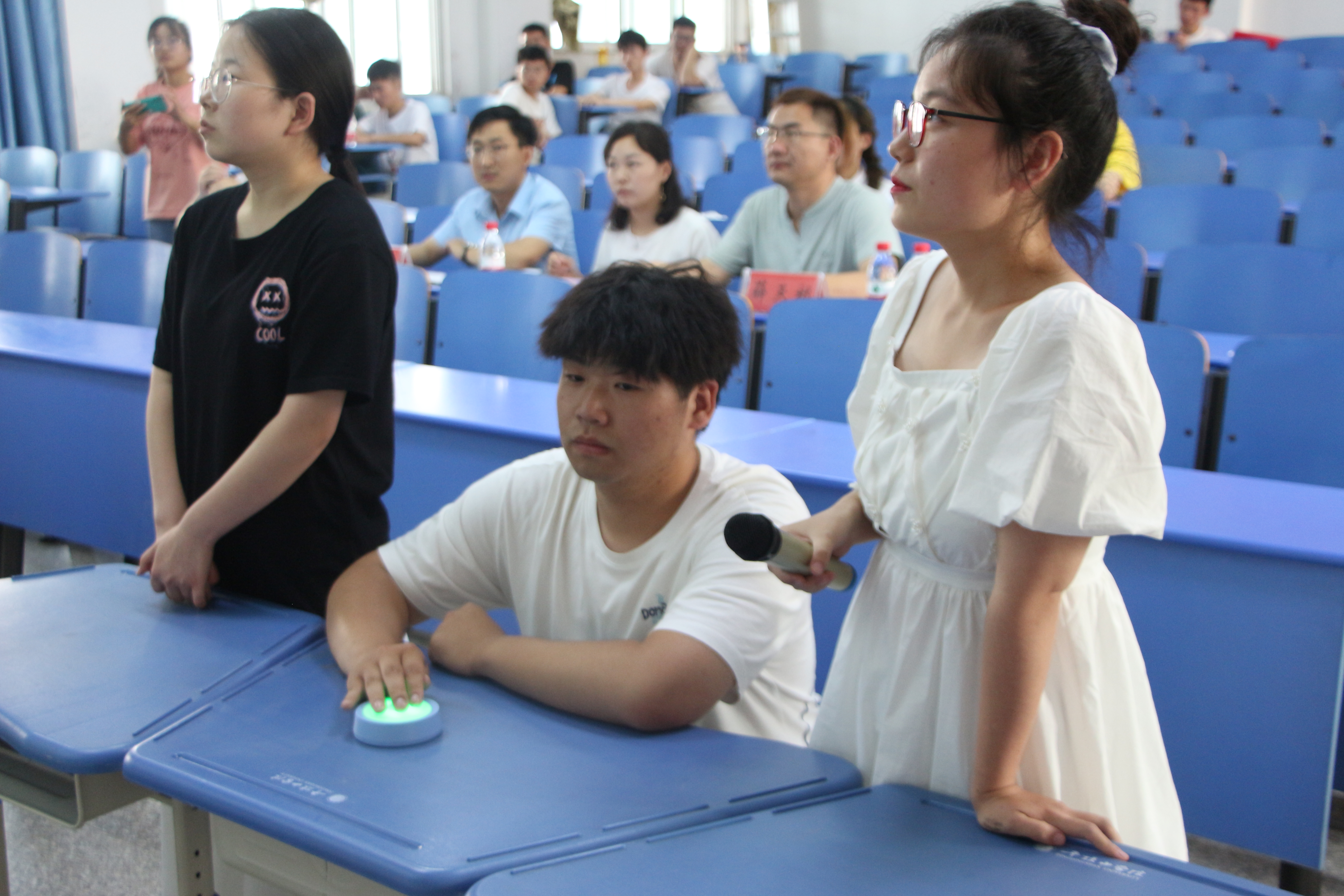 专业词汇竞猜大赛形式多样,在个人赛中,选手积极抢答,动作敏捷,现场气氛紧张激烈。在小组赛中,选手们默契配合,回答精准,展现出扎实的单词功底、团队合作意识与个人魅力。