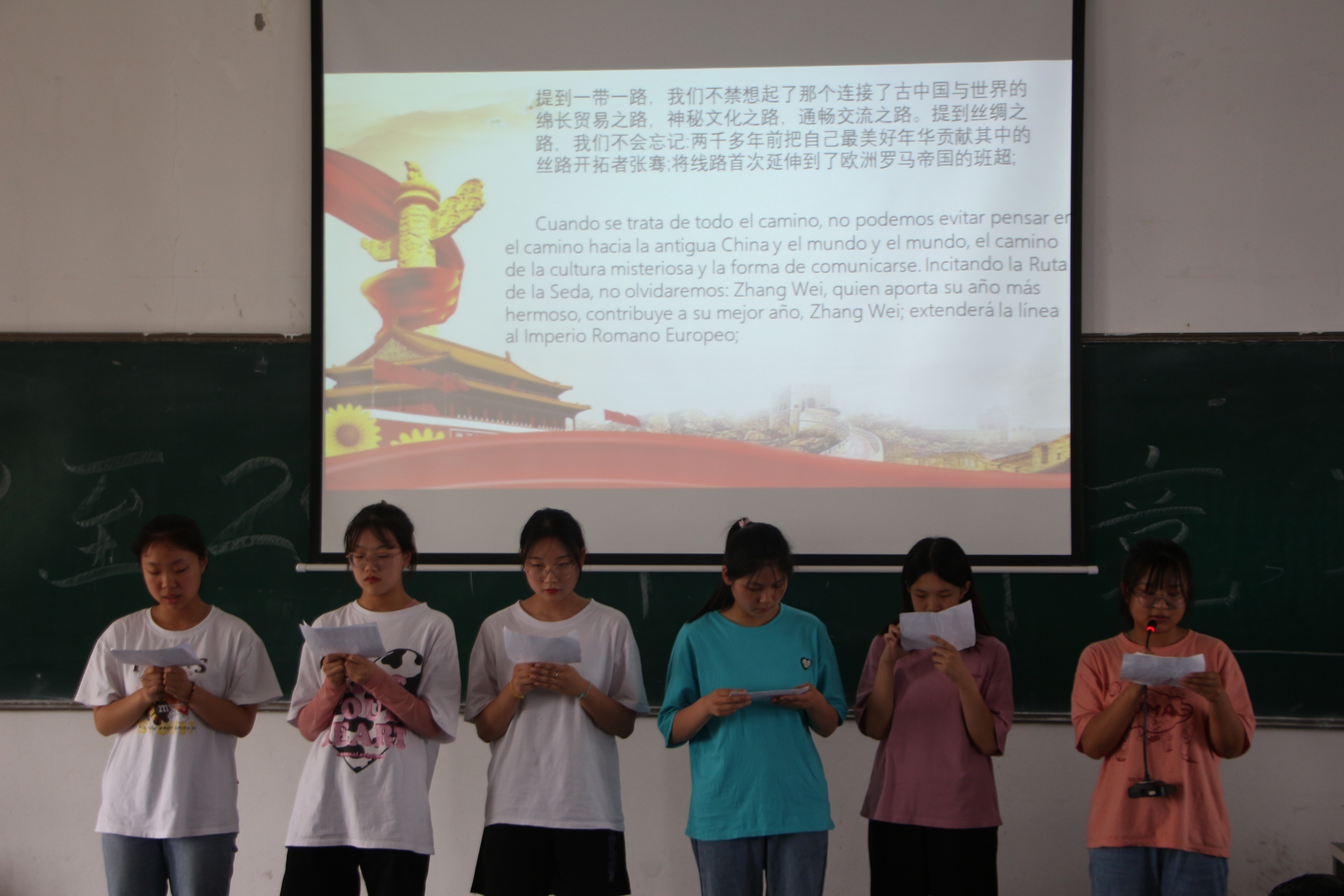 为进一步宣传和推广中外合办专业,让更多人感受到西班牙语的魅力,营造浓郁的学习氛围,2021年6月10日,williamhill中国在3207教室举办西班牙语学科竞赛系列比赛。副院长胡海峰、团总支副书记崔兵、各年级辅导员出席了本次比赛。赵贺、曹荣阳、邹明和薛天桥四位老师担任本次竞赛的评委,18、19和20级电子信息工程(中外合办)专业全体学生参加了本次竞赛。