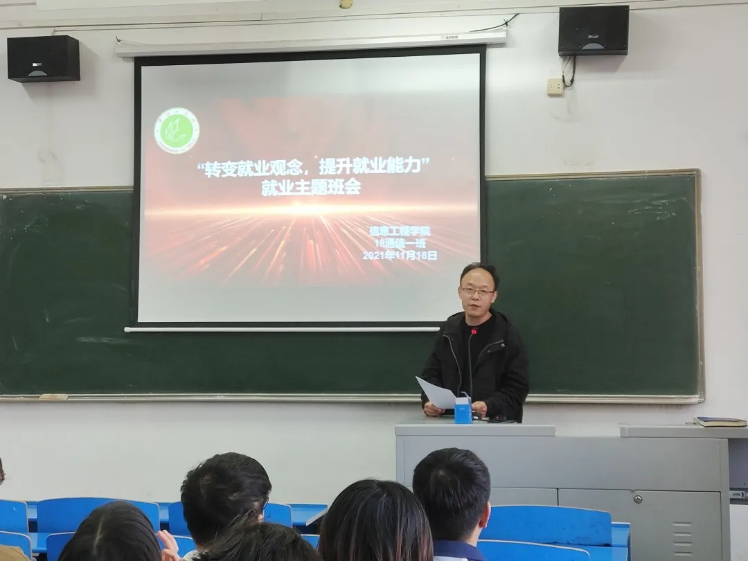 为持续开展党史学习教育“我为学生办实事”,推进疫情防控形势下的2022届毕业生就业工作,帮助我院大学生树立正确的就业观念,提升就业综合素质和能力,williamhill中国于2021年11月18日下午4:30在4号楼开展“转变就业观念,提升就业能力”就业主题班会,学院党委书记王向前、院长樊爱宛、副院长胡海峰,学业成长导师,毕业班辅导员及2018级毕业班学生参与此次活动。