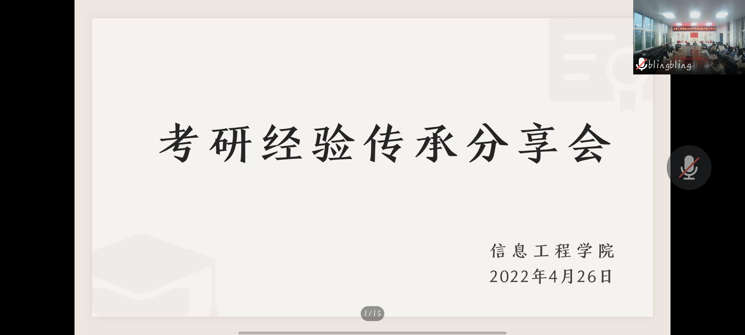 会议最后,赵珊珊和曹大兵老师通过分享自己考研时的过程和经验,指出在考研的道路上同学们要保持敬畏心和奋进心,一步一个脚印地走向终点,他们也不约而同地对正在备战的同学给予莫大的鼓励,并寄语同学们“所求皆所愿,所行化坦途”。