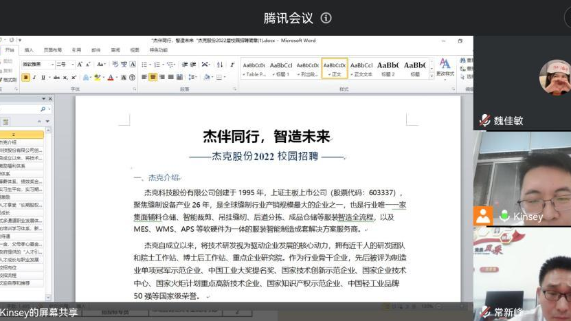 最后,常老师对本次进行总结,他殷切嘱咐2022届毕业生提前做好毕业规划,树立正确的就业观,利用好春季求职黄金时间,抓住机会,尽快落实就业,并寄语2019级同学尽快确定自己的职业意向,提前做好准备。