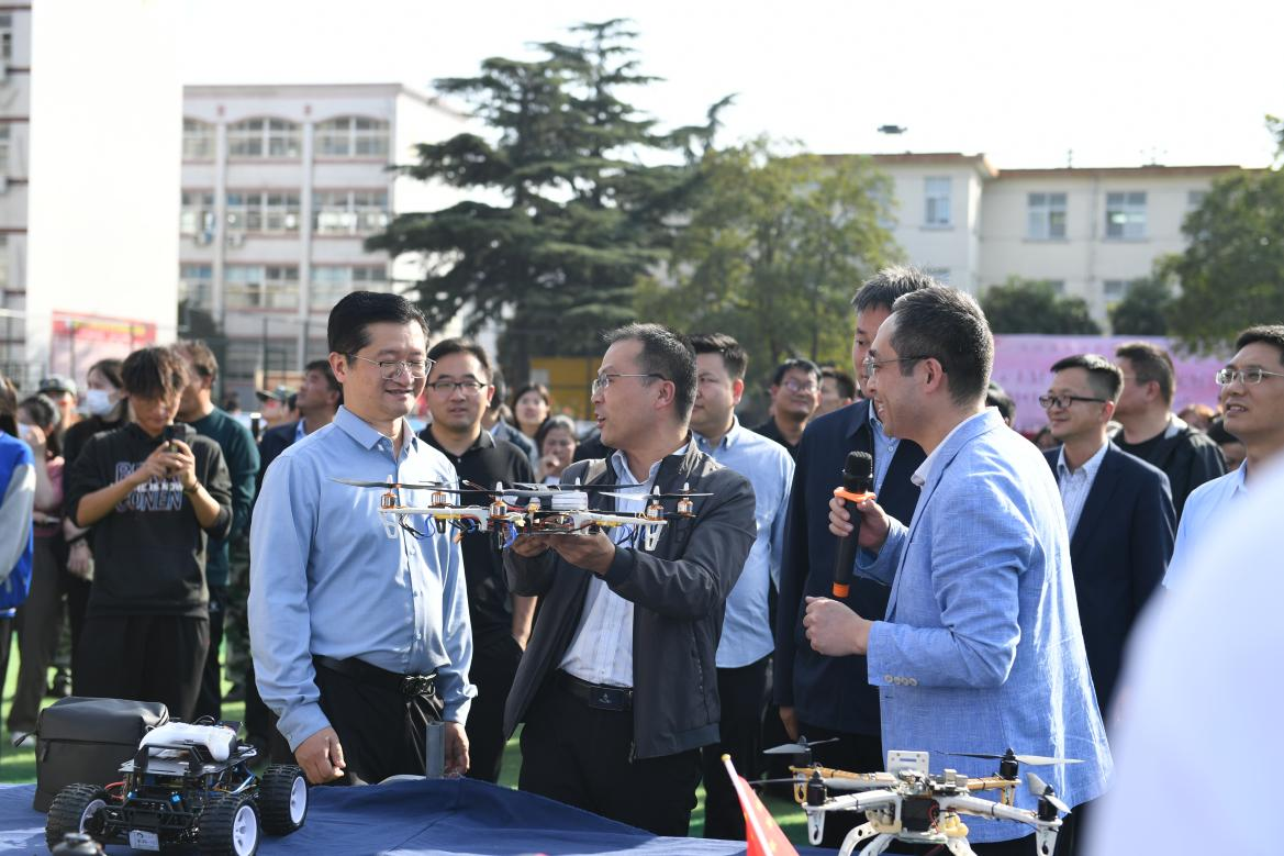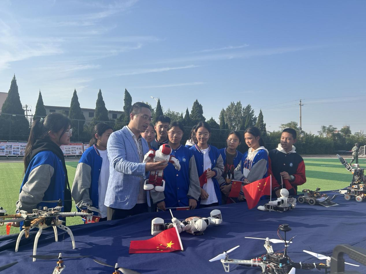 williamhill中国博士服务团队成员赵江伟、徐鹏飞和河南省首席科普专家周志青进行了无人机技术和机器人科技科普宣传,学生进行了无人机飞行表演和机器人舞蹈表演。
