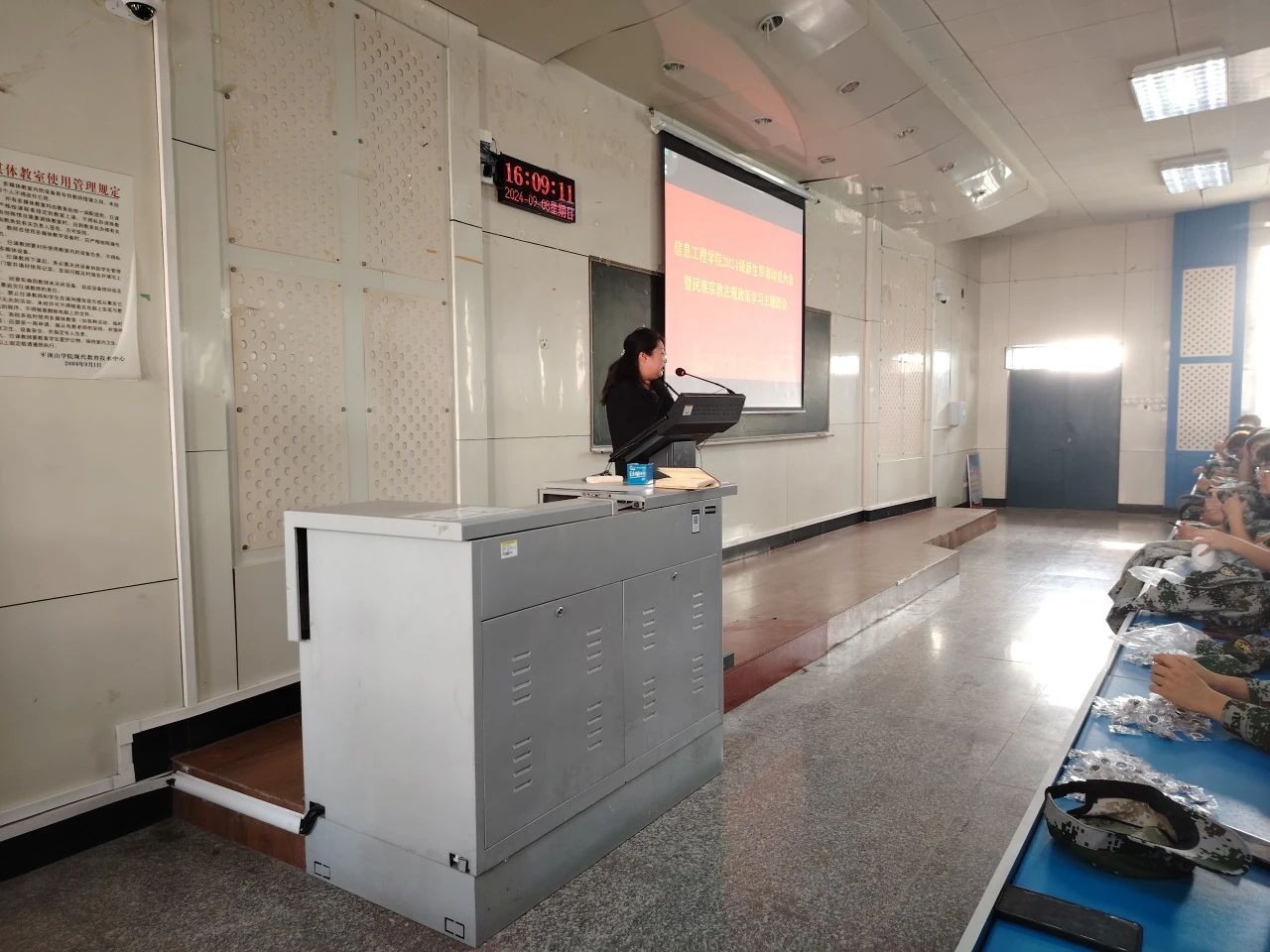 新生辅导员为大家讲解大学生活注意事项,重点普及防诈骗知识,提醒学生捂好钱袋子,加强防范意识。最后,辅导员鼓励大家认真参加军训,积极融入大学生活,鼓励大家度过一个愉快而充实的大学时光。