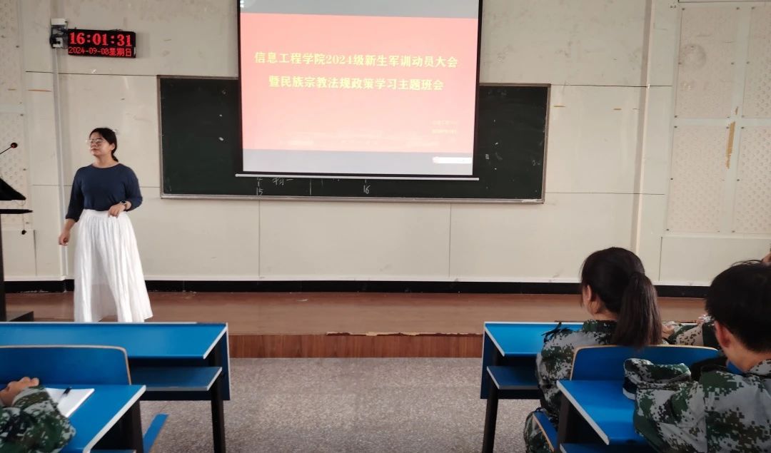 汗水书写青春,磨砺铸就坚韧。2024年9月8日,williamhill中国在4206教室开展williamhill中国2024级新生军训动员大会暨民族宗教法规政策学习主题班会,学工办主任赵珊珊、新生辅导员和2024级全体新生参与。