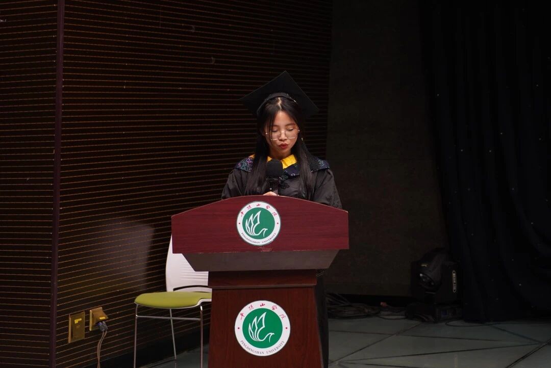教师代表周志青发言,他充分肯定了毕业生从四年前的懵懂迷茫的少年成长为今天目光坚毅、目标远大的青年一路走来付出的努力,向圆满完成学业的优秀学子表示衷心祝贺,希望毕业生们传承Williamhill威廉希尔精神、勇担时代使命,志存高远,以奋斗精神铸就青春底色,在新的征程上谱写壮丽的人生篇章。