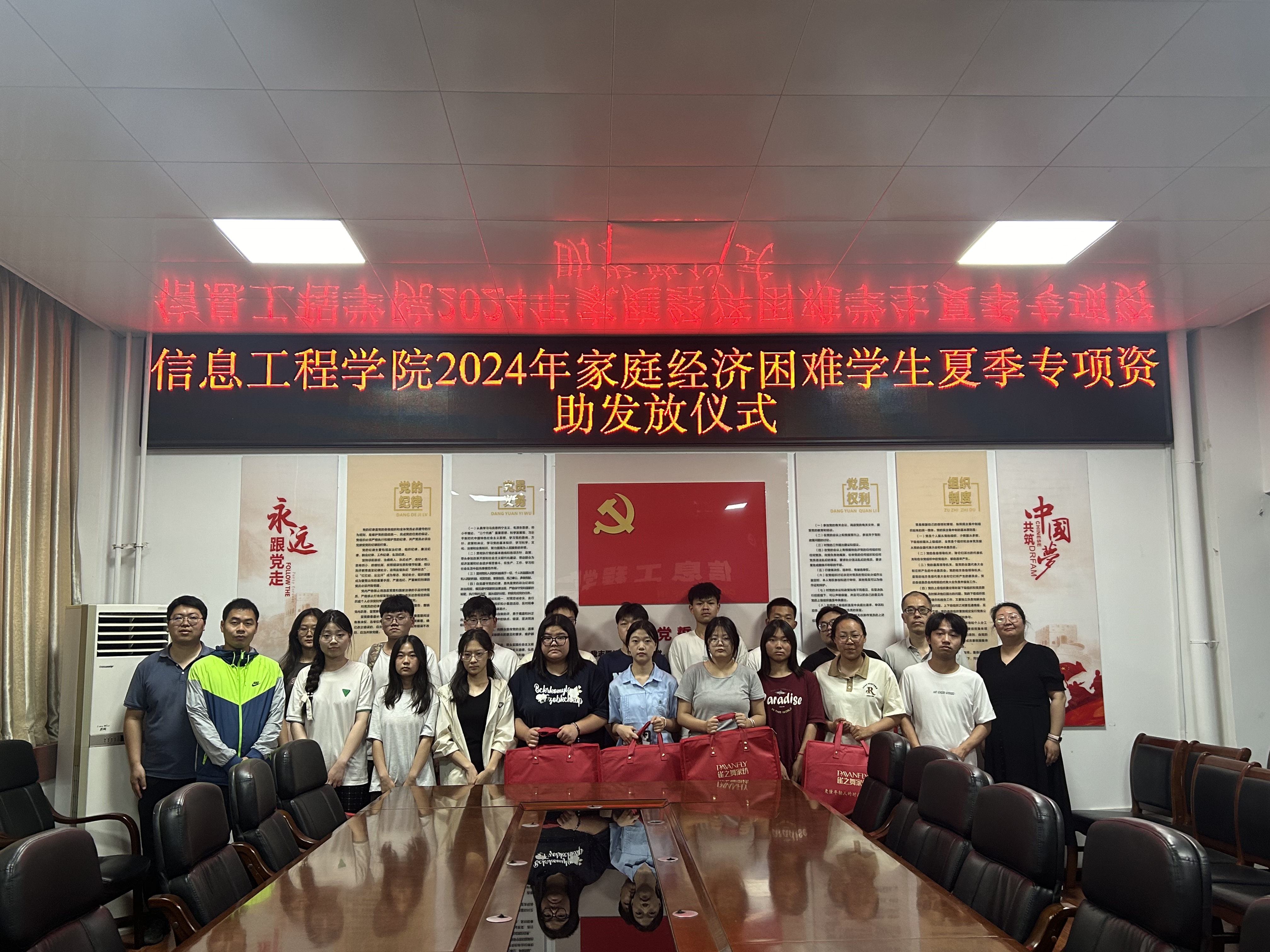 仪式上,资助负责老师吴英杰介绍了资助政策和学校资助夏季专项资助的工作政策,家庭经济困学生可以申请助学贷款和助学金,帮助完成学业,努力学习。随后学院领导向受资助的同学们发放了夏季专项资助大礼包。时合生副书记给同学们提出了希望:希望同学们要直面压力和困难,坚定理想信念,树立积极自信的良好心态;希望同学们矢志艰苦奋斗,练就过硬本领,锻炼高尚品格,学会感恩奉献,将来回报国家和社会。