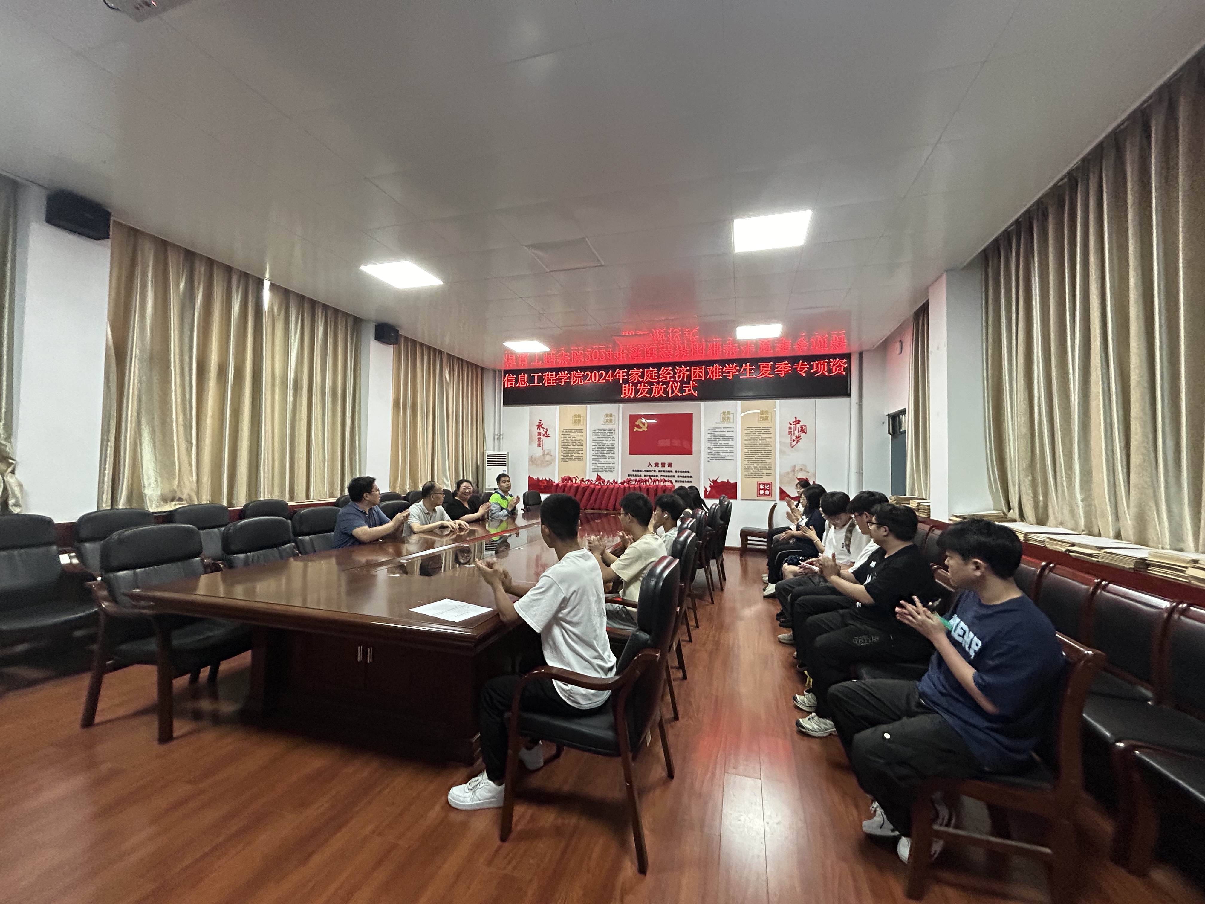 2024年6月4日,williamhill中国在4214办公室举办2024年家庭经济困难学生夏季专项资助发放仪式。党委副书记时合生、团委书记赵珊珊、辅导员吴英杰、白凤临、曹大兵和18名家庭经济困难学生参加了仪式。