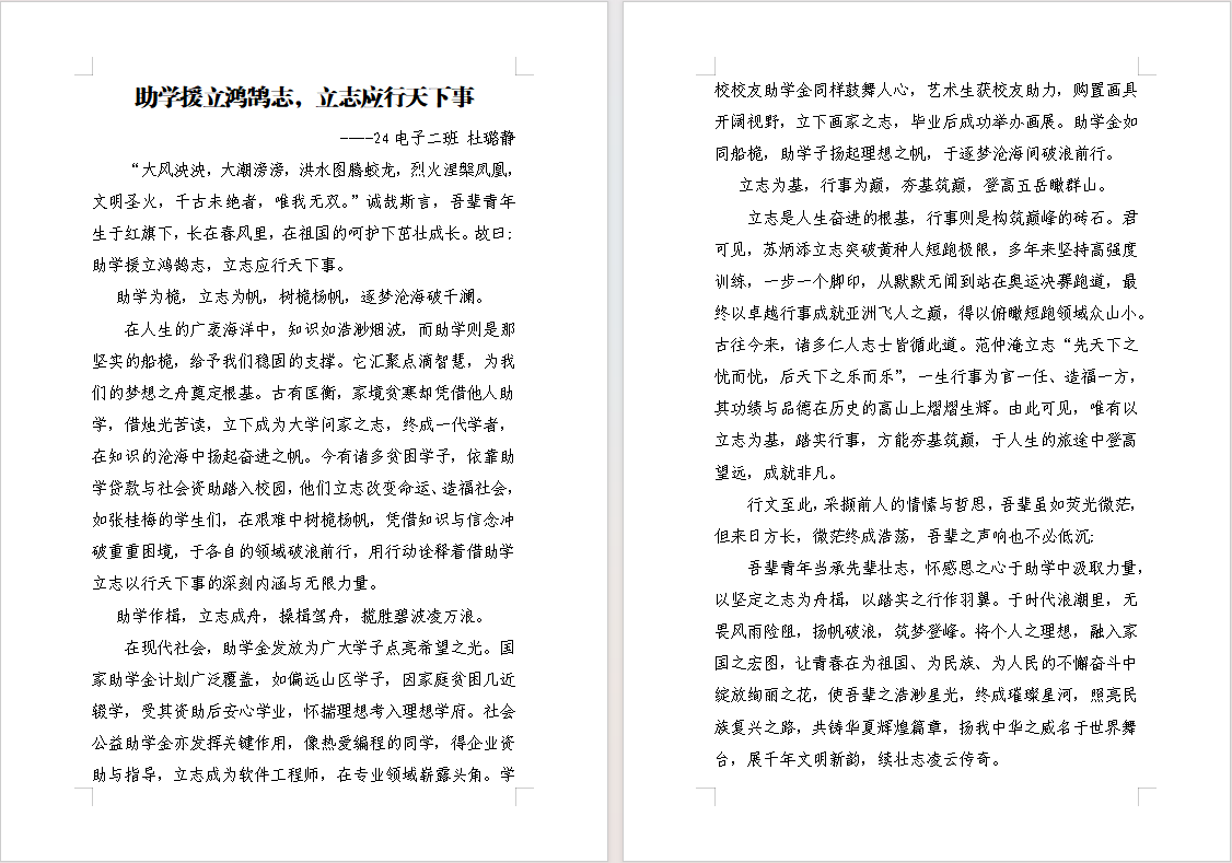 《助学援立鸿鹄志,立志应行天下事》作者:24级电子2班 杜璐静