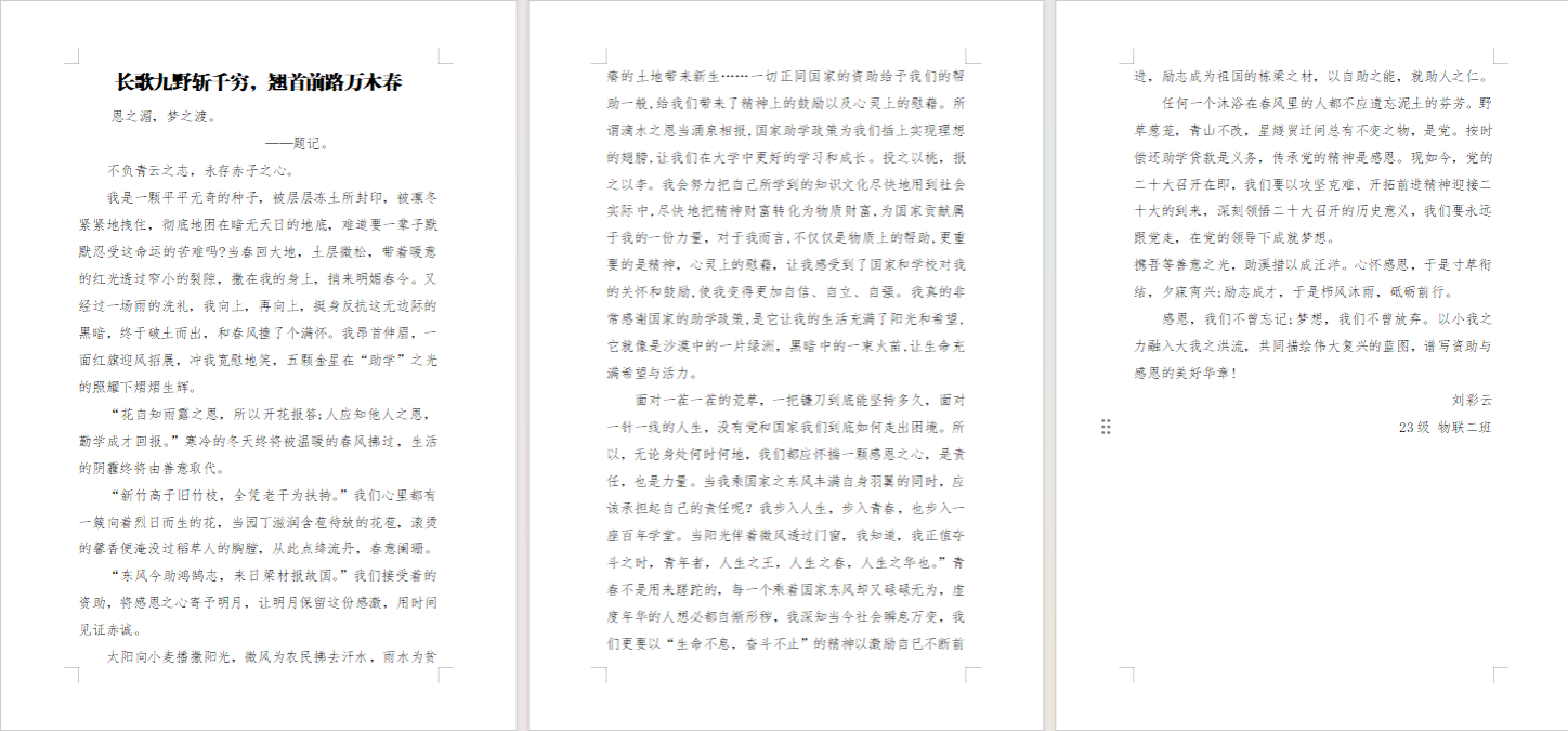 在征文作品中,学生们用真挚的情感和深刻的笔触,讲述了自己在资助政策下的成长故事,分享了那些感人至深的瞬间。他们的话语中充满了对国家的感激之情,也透露出对未来的无限憧憬和坚定信念。