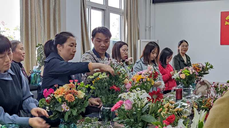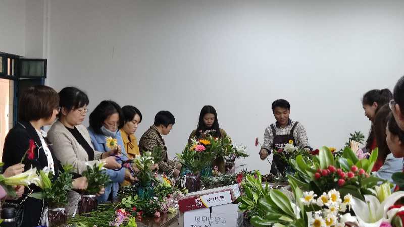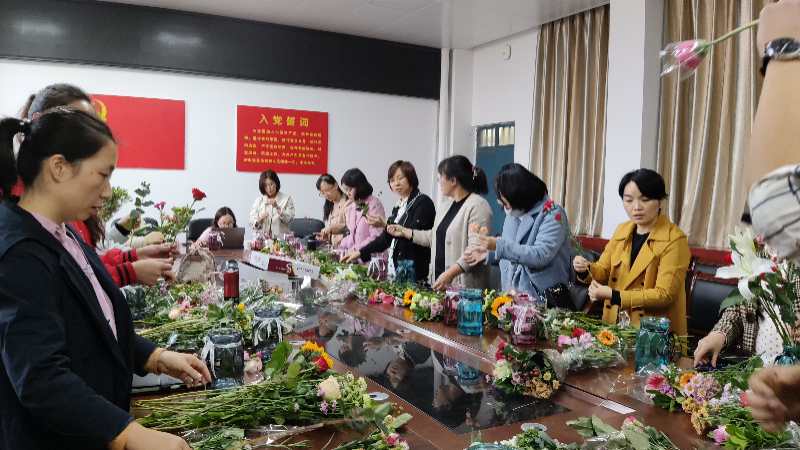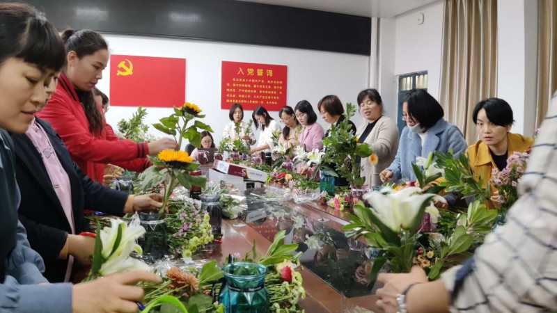 活动特邀资深插花老师现场讲授插花知识及技法。插花老师向大家细致地讲解各类花型和每种插花表达的意境,对插花的基本方法进行现场讲解和演示,将中国传统的插花艺术生动地展现在每个教职工面前。女教职工们在老师的悉心指导下,用自己灵巧的双手,尽情发挥创造力,整合造型,使得原本普普通通的花草经她们的巧手修剪后,错落有致地搭配在了一起,插出了漂亮美丽的束花。