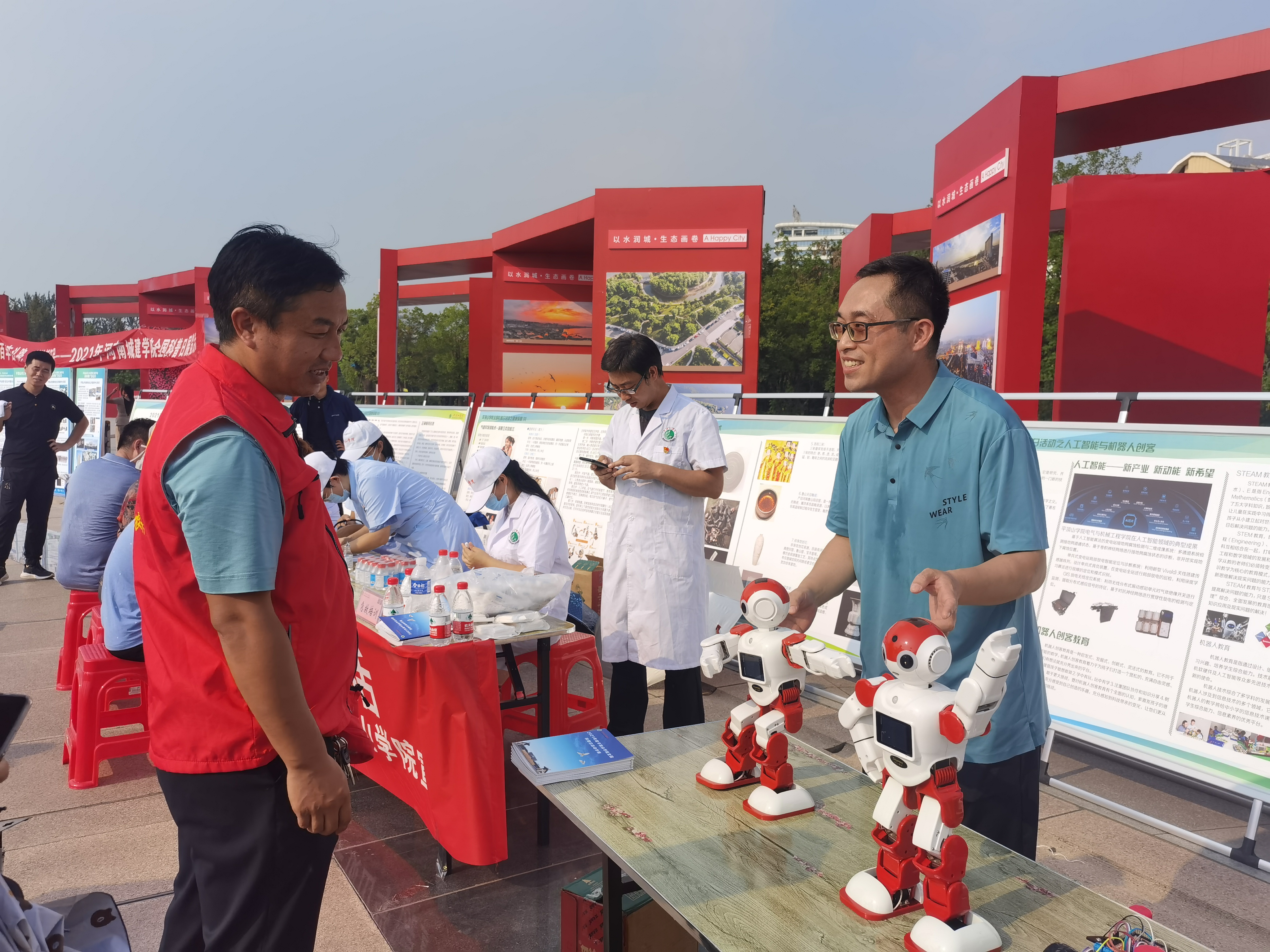 活动中,市领导、Williamhill威廉希尔党委副书记袁桂娥等人来到我院人工智能展区前,周老师为大家现场演示了如何操作机器人,多才多艺的机器人得到领导及市民朋友们的一致好评。