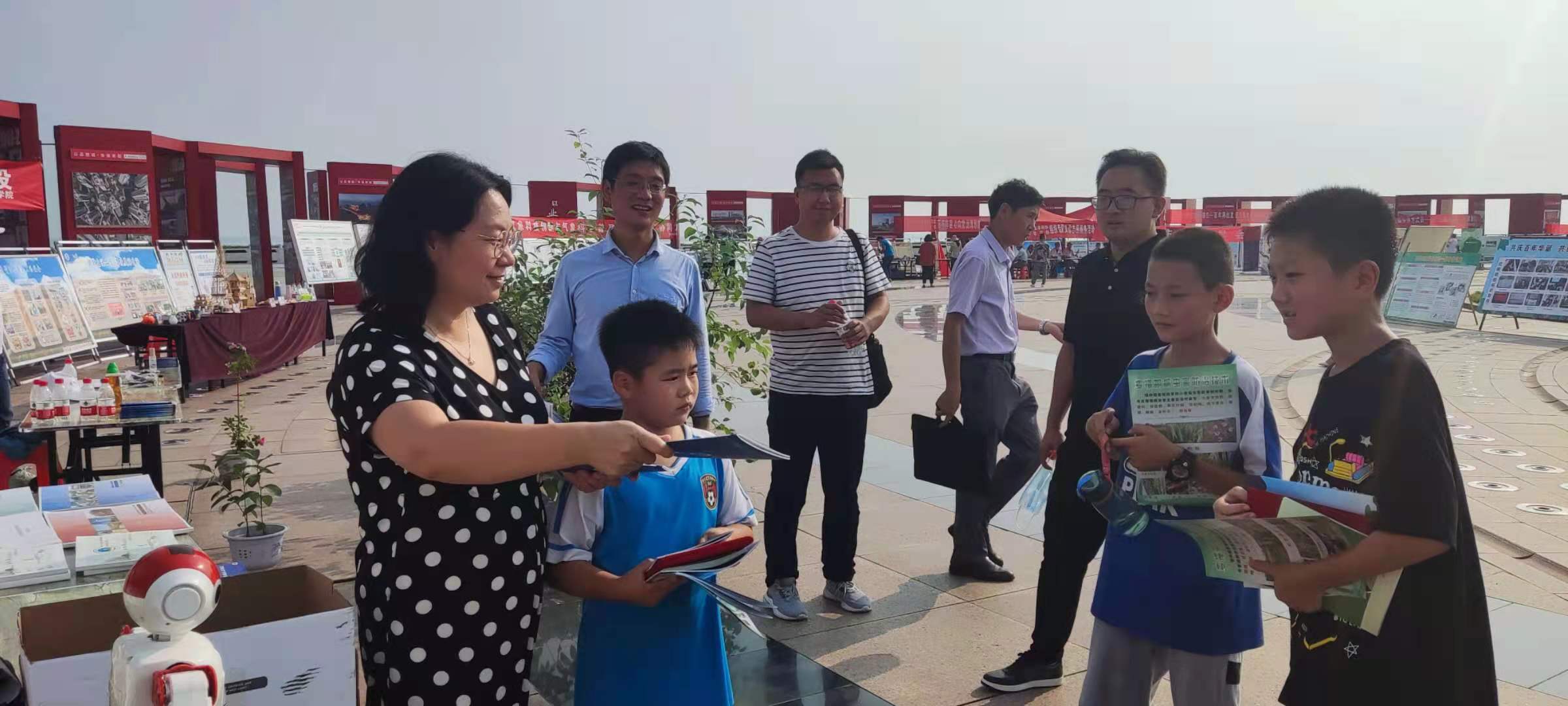 讲解结束后,王向前书记亲切的向前来参观的小朋友发放宣传册,鼓励小朋友们好好学习科学知识,争做小小发明家。