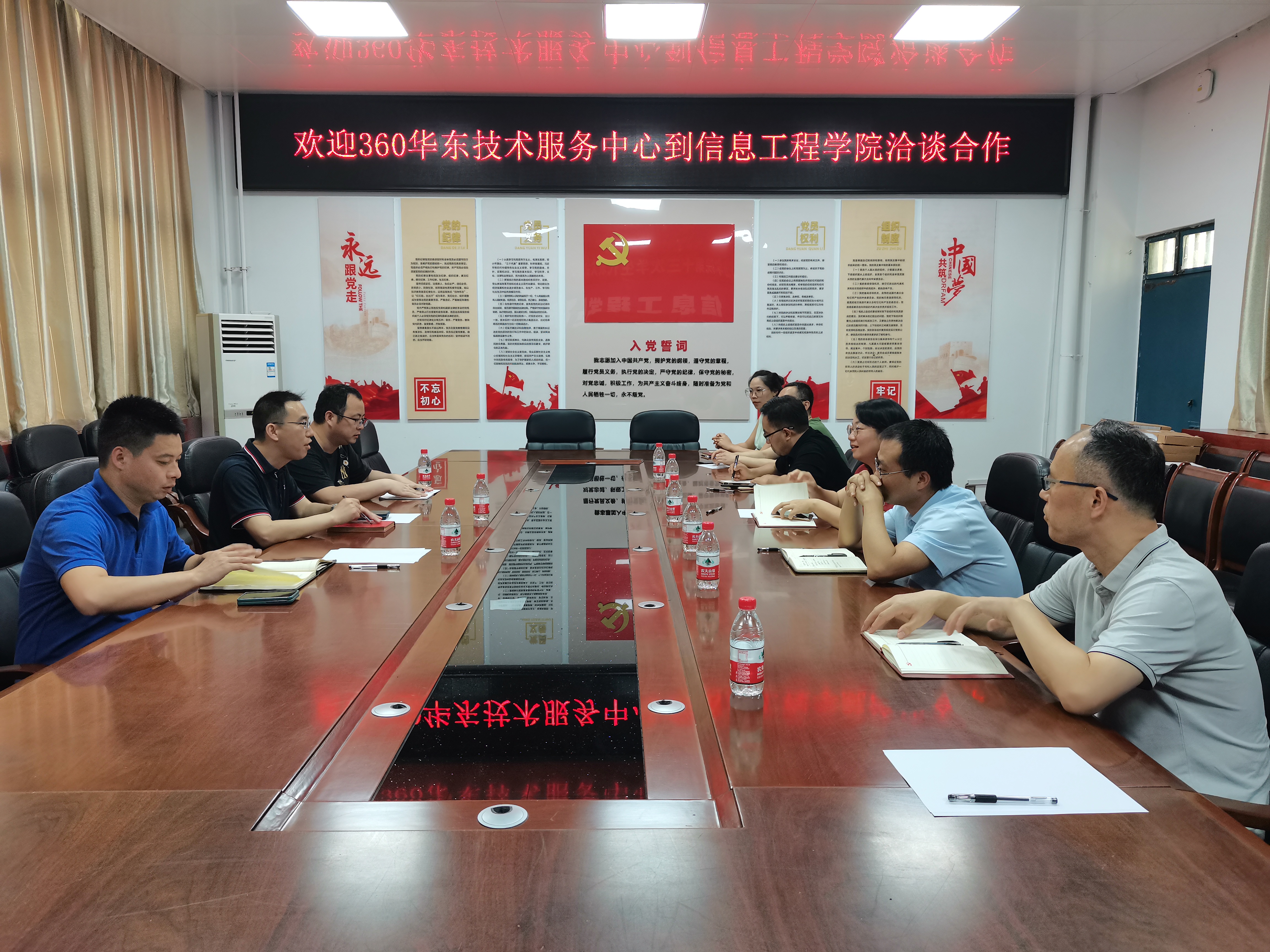 会议由王向前主持。360华东技术服务中心的总经理陈家军首先介绍了公司的发展历程及开展的业务,详细介绍了产教融合、课程研发共建网络安全产业学院、社会服务等方面的情况。党委书记王向前和院长樊爱宛分别介绍了学院的专业设置及发展情况,表达了在学院的专业建设、课程体系建设、学生就业创业方面的需求。