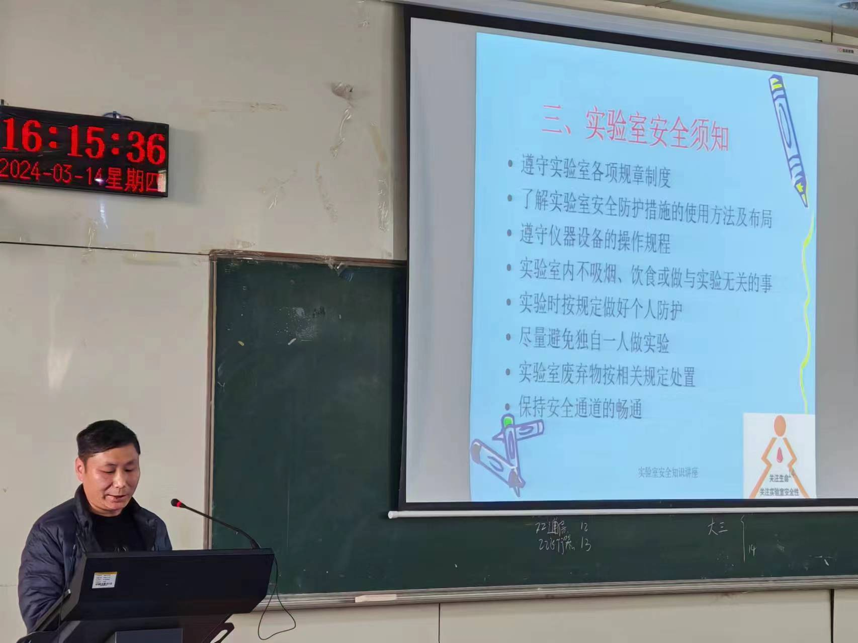 根据活动安排,实验中心做了关于实验室安全方面的专题培训和讲座。培训实验室重大安全事故案例分析、实验室安全管理制度实验室安全标志实验室安全事故预防、仪器设备使用安全、水电安全、怎么样使用灭火器在紧急情况下如何成功从火场逃生几个方面进行了讲解。这堂“开学第一课”令同学们受益匪浅。
