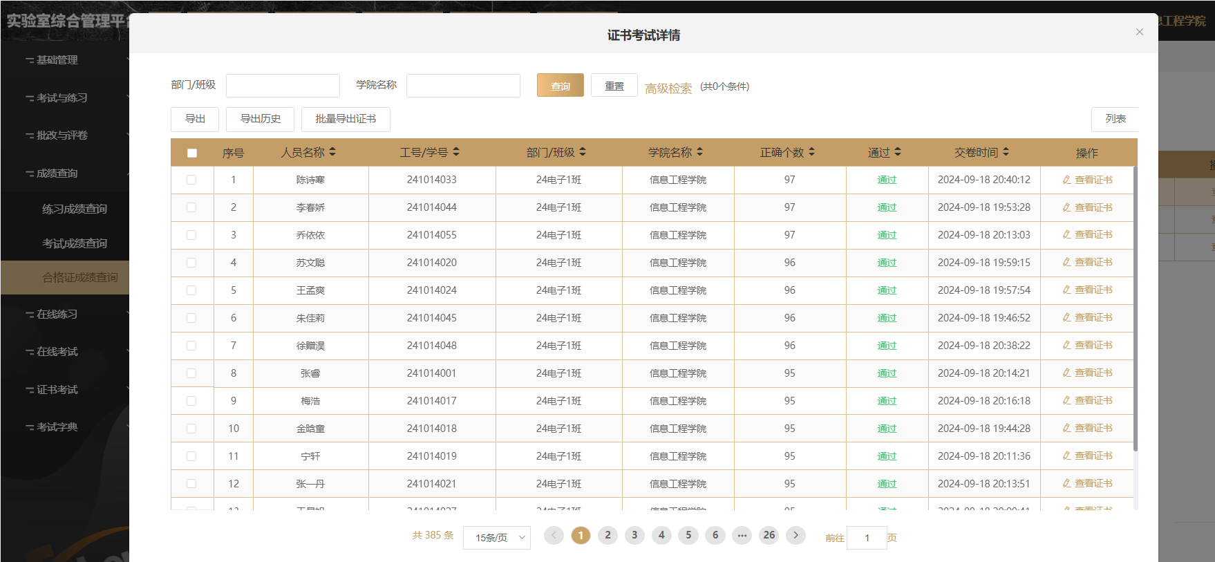 培训结束后,安排2024级新生通过实验室综合管理平台安全管理系统进行实验室安全教育准入考试。新生在参加实验室安全教育培训及安全教育准入考试并考核合格后,与学院签订实验室安全承诺书,方可具备进入实验室资格。