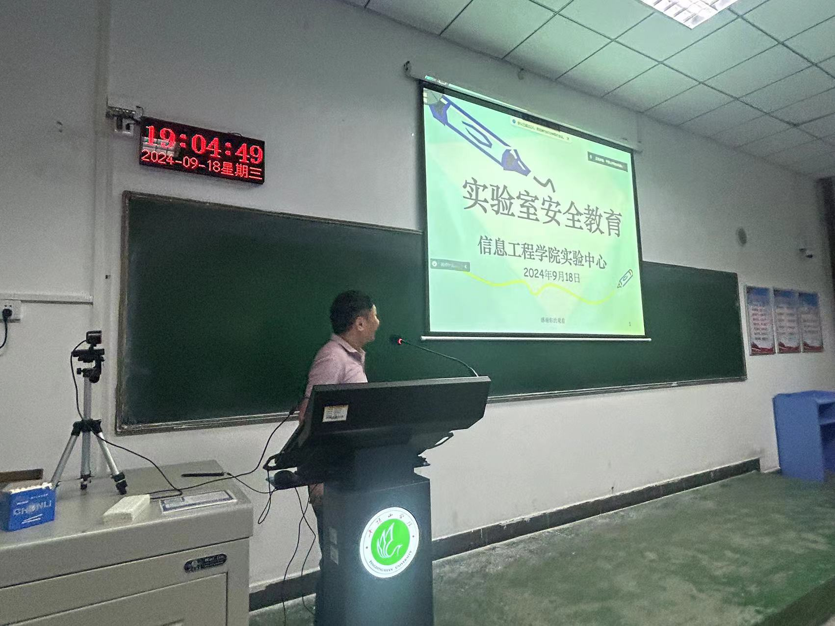 参加本次安全教育的人员包括信息工程学院2024级新生、辅导员老师和实验室管理人员等450余人。安全教育内容包含:实验室重大安全事故案例分析、实验室安全、消防安全、水电安全、实验/实训室安全管理制度、实验室安全标志、实验室安全事故预防、发生事故时的应对策略、仪器设备使用安全及注意事项等9方面。实验室安全教育讲座中,围绕实验室安全标识、实验室用电安全、实验室消防安全、实验室突发应急事故处理办法等方面进行了全面、有针对性地讲解。